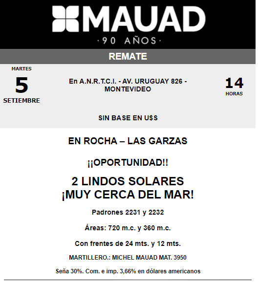 Remate 5 de setiembre 13:30hs